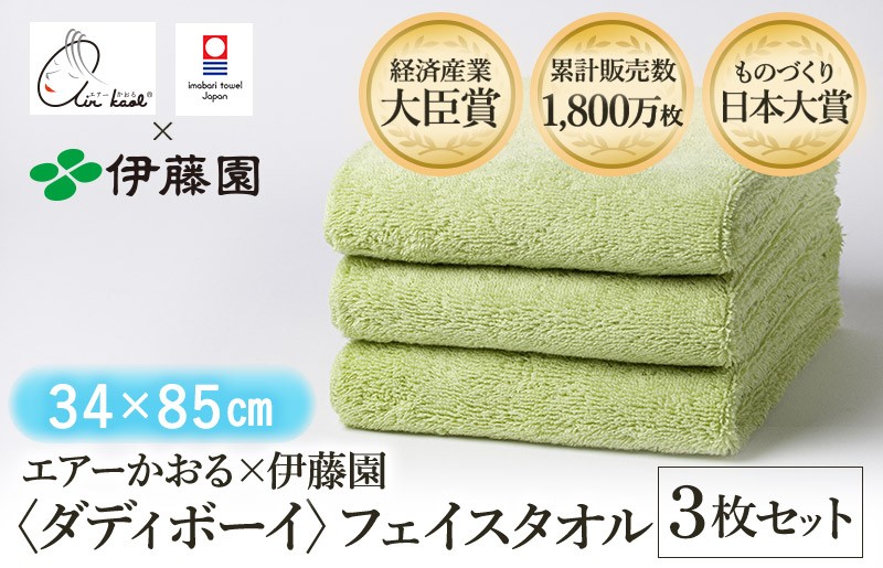 (今治タオルブランド認定品) エアーかおる × 伊藤園 ダディボーイ フェイスタオル 同色3枚セット〈ココア〉 [I003410FT3BR] えあーかおる 今治バスタオル ふんわり 伊藤園