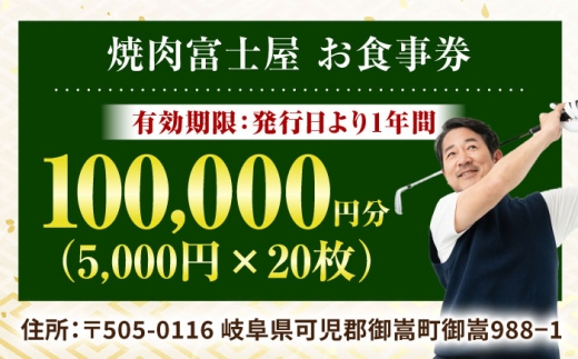 - 行列のできる老舗焼肉店 焼肉富士屋 お食事券 100,000円分 / 飛騨牛 A5等級 黒毛和牛 塩タン / 御嵩町 / 富士屋 [AVBQ004]