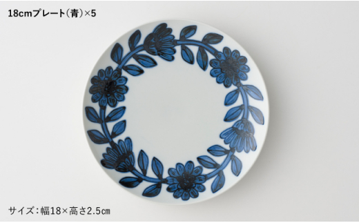 - 【波佐見焼】デイジー(青)18cm プレート 5枚セット 食器 皿 【西山】【NISHIYAMAJAPAN】 [CB66]