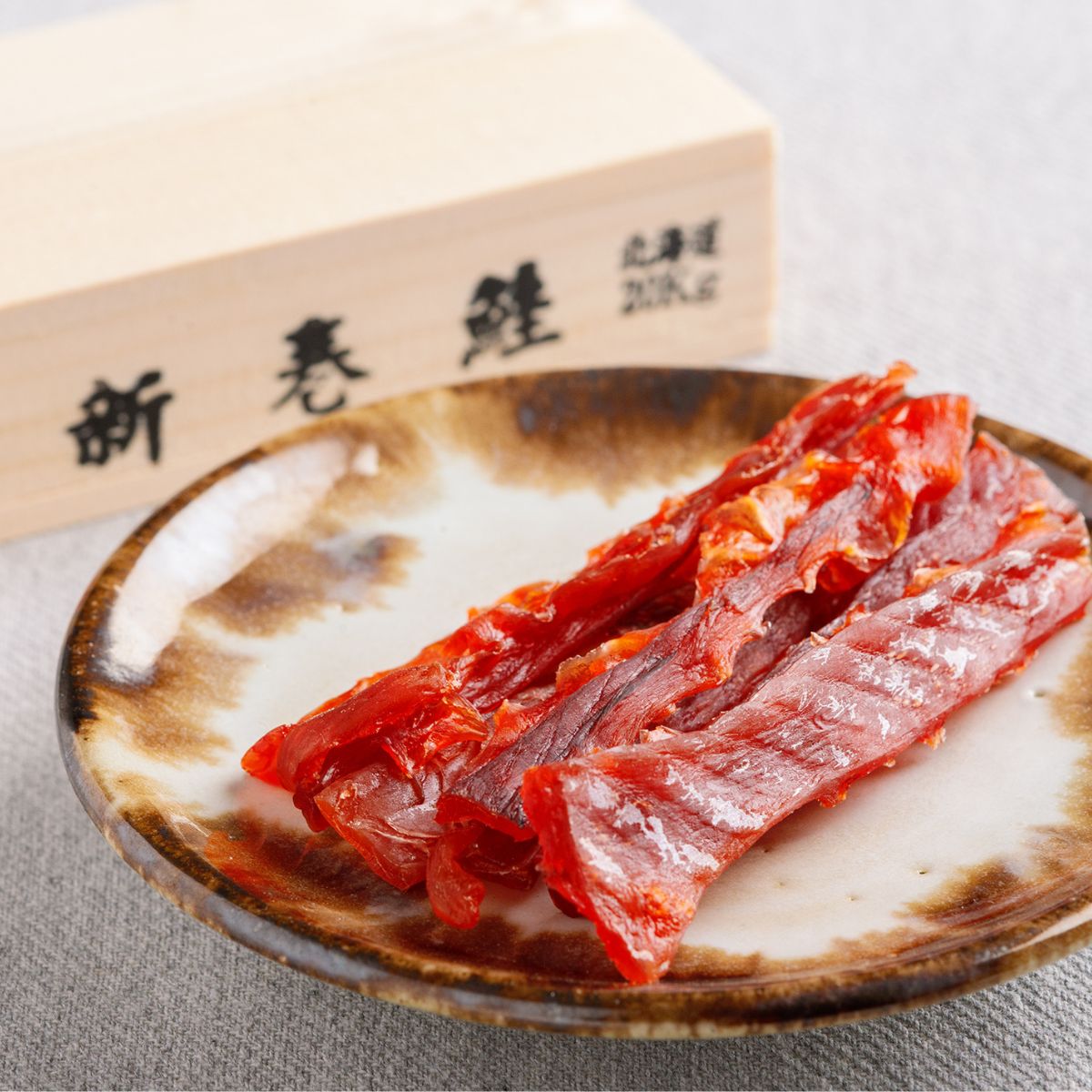 - 【先行予約】鮭とば(新巻鮭木箱風ミニチュアケース付き) 5個セット(2025年10月以降順次発送) SHAI002