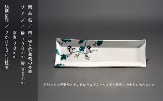 - 九谷焼「四十雀と野葡萄の長皿」村松道