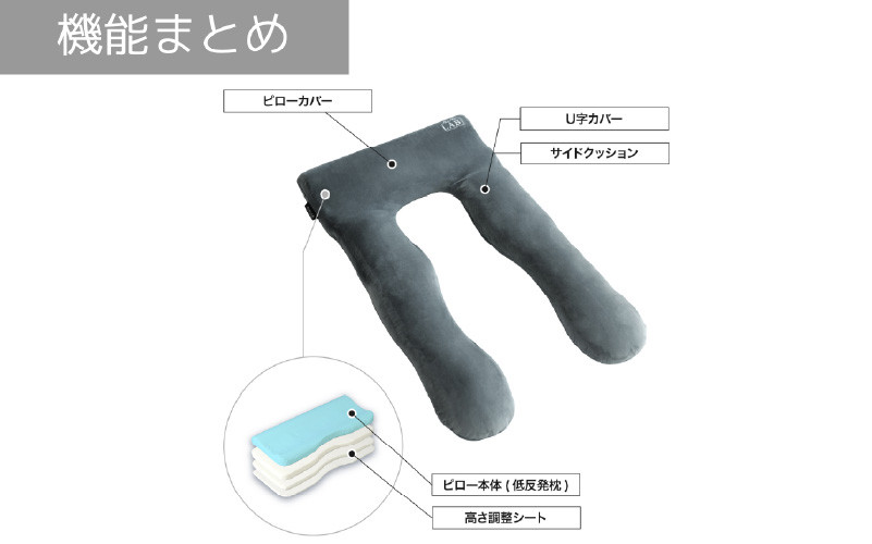 【BIBILAB】全身で眠るまくら(LFP-100-GY) - 高さ調整シート (7段階)×低反発まくら