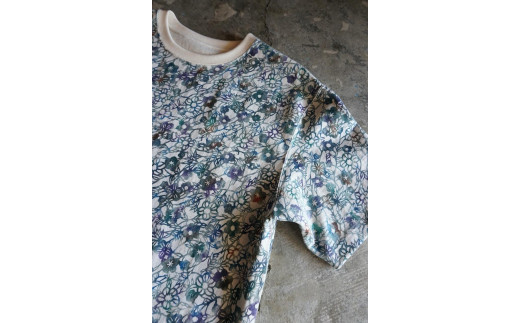 [HAM IAM]【数量限定】手差型染クルーネックTシャツ「小花ちらし」緑紫系【M/L/XL】| Tシャツ 服 染物 和柄 おしゃれ 送料無料 東京 八王子