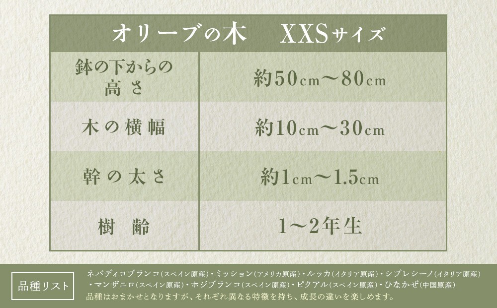 オリーブの木 XXSサイズ 高さ約50~80cm