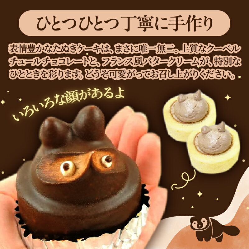 - 【ふるさと納税】ケーキ たぬきケーキ 6個入り バタークリーム 北海道バター クーベルチュール チョコレート デザート お菓子 手作り 手土産 グルメ おやつ ギフト 贈答用 冷凍配送 かわいい 動物 スイーツ お取り寄せスイーツ 大分県 別府市 送料無料
