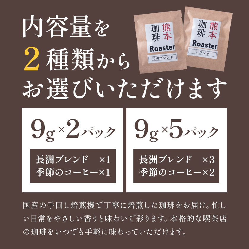 【ふるさと納税】コーヒー 手回し自家焙煎珈琲 ドリップパック詰め合わせ 2パック 5パック 熊本珈琲Roaster《30日以内に出荷予定(土日祝除く)》熊本県 長洲町 ドリップ パック セット 長洲ブレンド 季節の コーヒー ドリップバッグ バッグ