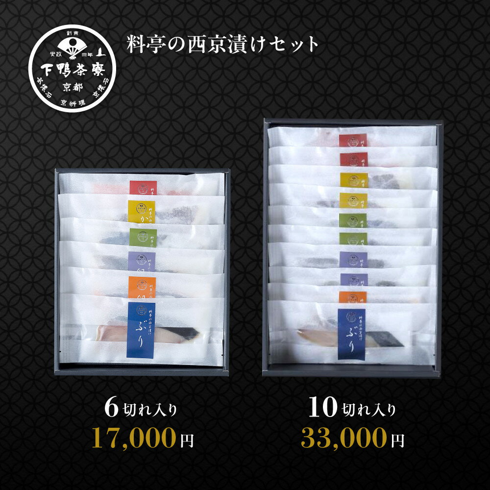 - 【ふるさと納税】【下鴨茶寮】料亭の西京漬けセット 6切れ 10切れ 選べる[ 京都 老舗 料亭 ミシュラン 特製 西京漬け 人気 おすすめ グルメ 京料理 お惣菜 ご飯のお供 ギフト プレゼント お取り寄せ 通販 送料無料 ふるさと納税 ]