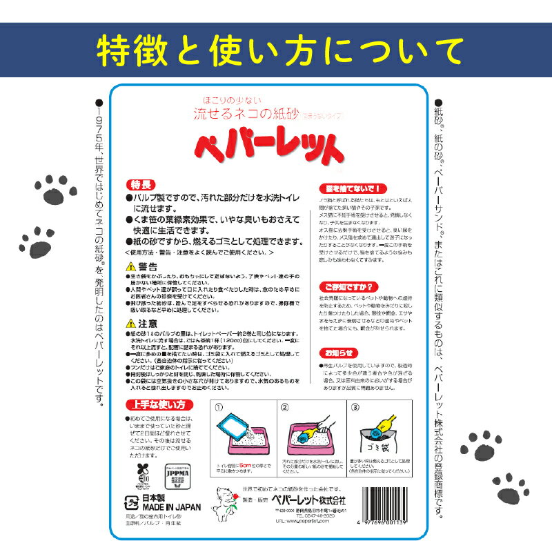 - 【ふるさと納税】 ペパーレット トイレ 流せる ネコ 紙砂 猫砂 8リットル 5袋 ペット用品 猫用トイレ 飛び散り防止 消臭 抗菌 固まる 燃えるゴミ 処理簡単 ねこ砂 ネコトイレ 掃除 清潔 衛生的 ペットケア 環境配慮 藤枝市 静岡県