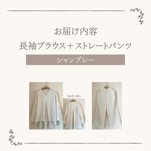 - ルームウエア(長袖ブラウス+ストレートパンツ【シャンブレー使用】)