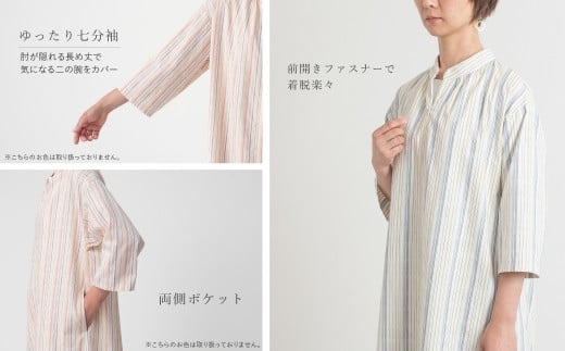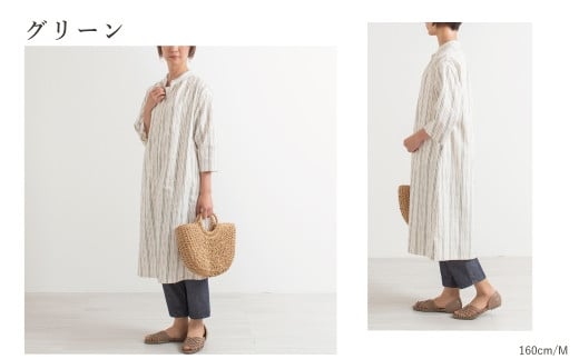 - 【G0670】新織 三河木綿 前開きワンピース:配送情報備考 M / グリーン