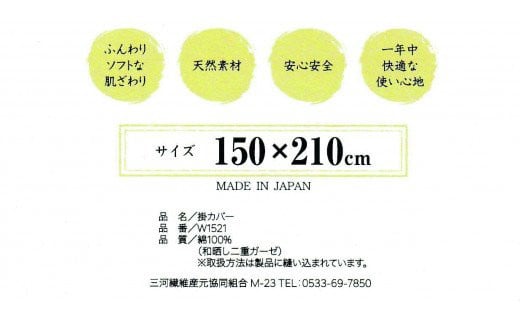 - 【G0209】和晒し ダブルガーゼ掛け布団カバー シングルロングサイズ:配送情報備考 グリーン