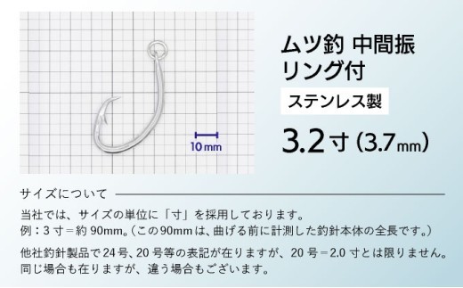 - KS002-3 ムツ釣 中間振 リング付 ステンレス製3.2寸(3.7mm)10本×3袋