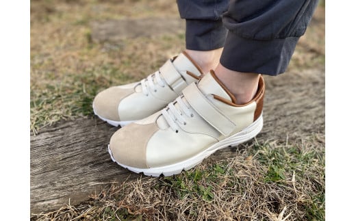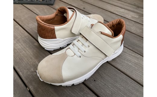 快適 !職人が作る レザースニーカー 白 × 茶 25cm | 関口善大靴工房 くつ 革 職人 靴 レザー 本牛革 調布 ファッション スニーカー 東京都 ブラウン ホワイト