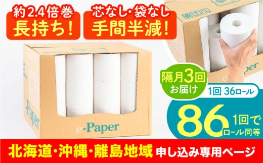 - 【北海道・沖縄・離島用】【隔月配送 全3回定期便】芯・袋なし! トイレットペーパー シングル 36個入 「e-Paper」《豊前市》【大分製紙】 芯なし 130m 無包装 コアレス 日用品 消耗品 常備品 大容量 [VAA161]