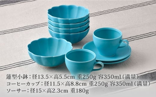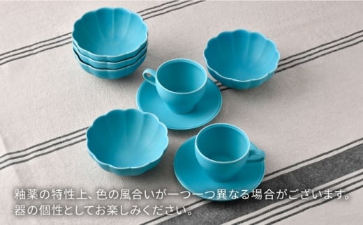 【波佐見焼】 小鉢+コーヒーカップ&ソーサー 2客 トルコブルー モアハッピーセット【福田陶器店】 [PA393]