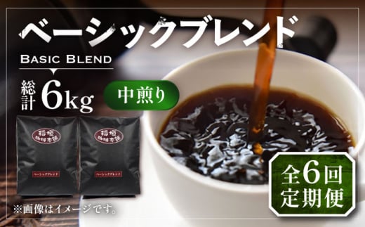 【豆でお届け】【全6回定期便】ベーシック ブレンド コーヒー 500g×2 ( 中煎り ) 《豊前市》【稲垣珈琲】珈琲 コーヒー 豆 粉 [VAS198]