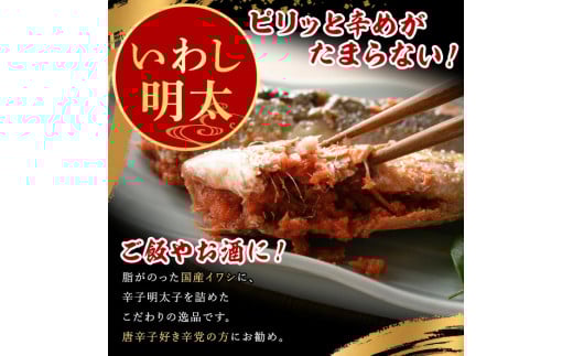 - ピリ辛いわし明太(計6尾) 明太子 明太 めんたいこ めんたい 辛子明太子 辛子明太 海鮮 魚介 いわし イワシ 鰯 魚卵 セット おかず おつまみ 晩酌 冷凍【マル五】as06-041