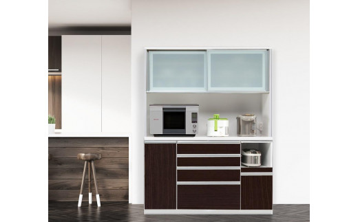 - (ブラウン)【開梱設置】サフラン キッチンボード 幅150cm キッチンボード 引き戸 食器棚 オープンボード 完成品 カップボード ダイニングボード 150幅 大川家具