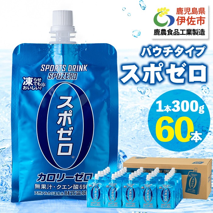 - isa587-tn 〈20日以内に発送〉 スポーツドリンク(300g×60本)スポゼロ パウチ カロリーゼロ 天然アルカリ 温泉水 で作った 飲料 鹿児島県 伊佐市 で製造 グレープフルーツ の香り 身体に必要な ミネラル成分(ナトリウム) がたっぷり クエン酸 690mg/本含有 冷凍 可能 保冷剤 としても【財宝】