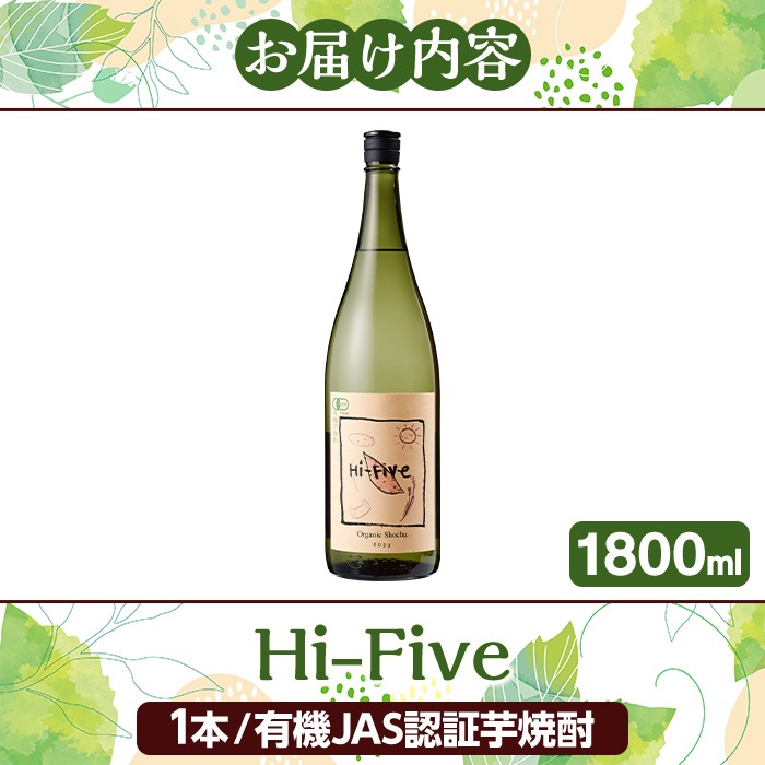 数量限定!オーガニック焼酎「Hi-five」(1本・1800ml) 焼酎 芋焼酎 オーガニック 有機JAS さつまいも さつま芋 紅はるか ベニハルカ 酒 お酒 アルコール 晩酌 数量限定 【大石酒造】akn038-30