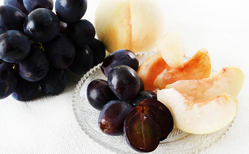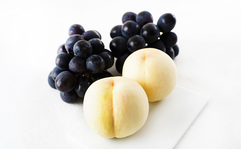 - 桃 ぶどう 2026年 先行予約 果物詰合せ 白桃 2玉(1玉200g以上) ニュー ピオーネ 2房(合計約940g)化粧箱入り 岡山県産 国産 フルーツ 果物 ギフト 贈り物 セット