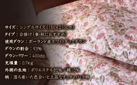 【 糸島 羽毛 ふとん 】年中用(合掛け 布団) ローズ ダウン 93%【 シングル 】 糸島市 / 株式会社三樹 [AYM003] 羽毛 布団 ふとん 肌布団 合掛け 掛け布団 シングル 薄手 羽毛布団 年中用