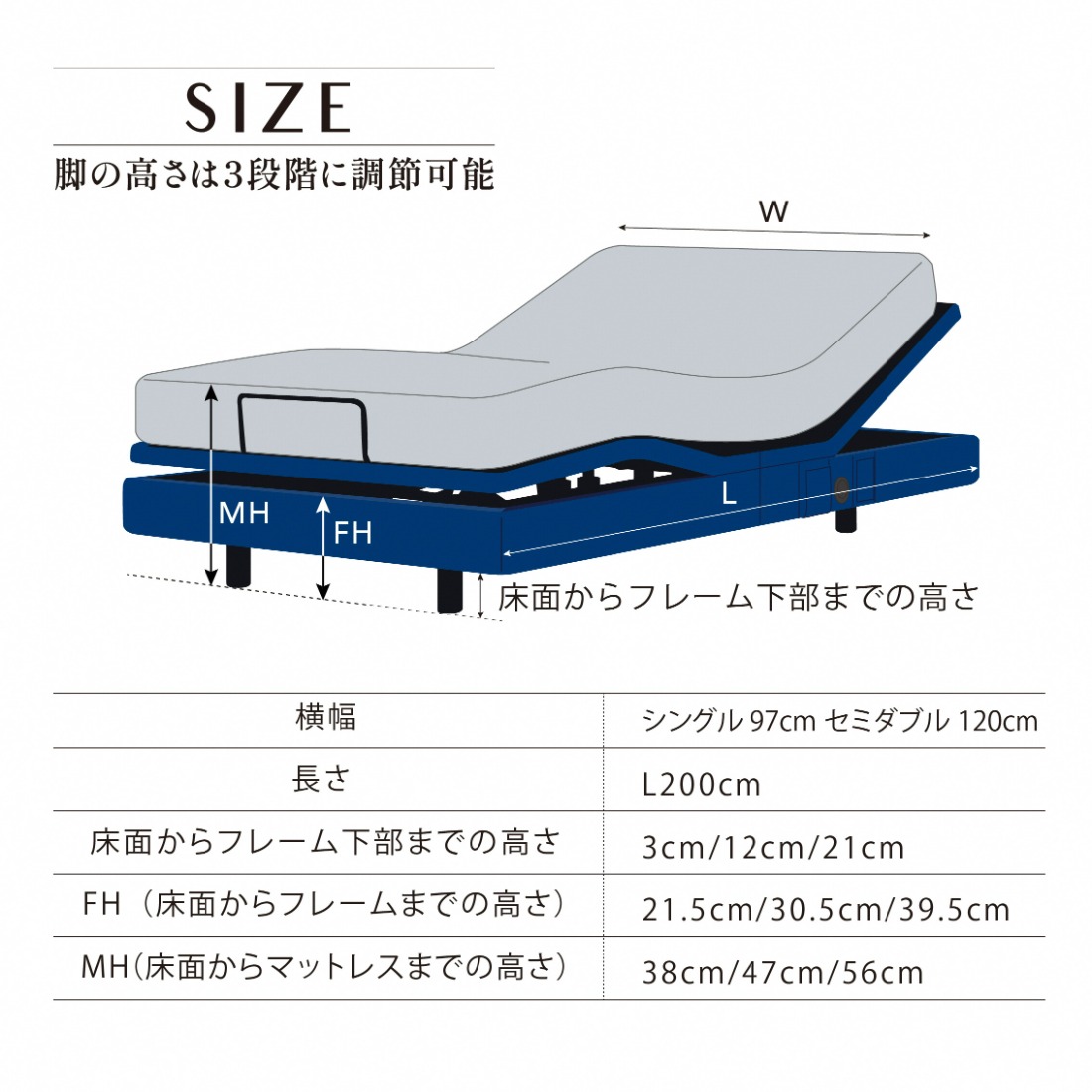- 1AP1【シモンズ】電動リクライニングシングルベッド シムレスト 5.5レギュラー/AB24E02 ブルー色