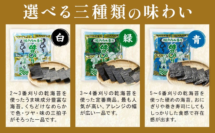味付海苔 白石おどり 選べる種類 白 緑 青 全型20枚分 (6つ切り12枚入り 小袋×10小袋) 小林産業株式会社《45日以内に出荷予定(土日祝を除く)》岡山県 笠岡市 海苔 のり 味付海苔 味付のり 味のり ごはんのお供 海産物 乾物---K-56---