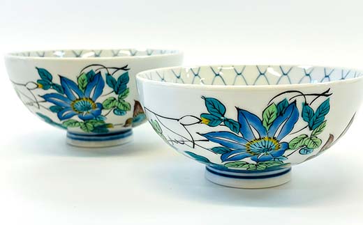 九谷焼 組飯碗 鉄仙 伝統 色絵磁器 九谷五彩 手描き 一点もの インテリア 食器 碗 F6P-2869