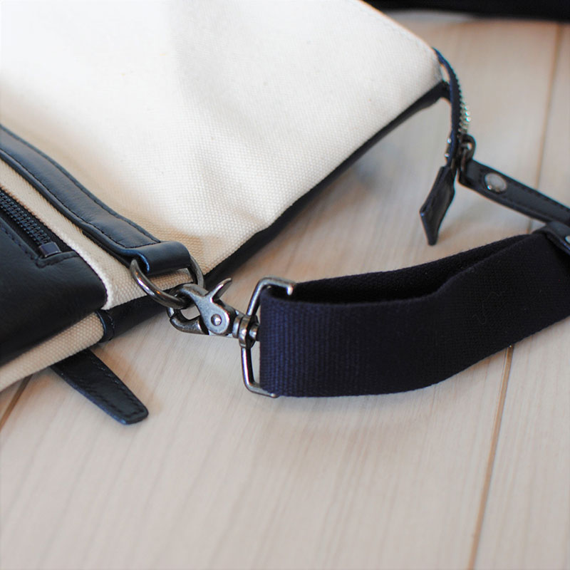 旅行にも普段使いにも最適 革と地産帆布で作ったボディバッグ 琵琶湖ブルー【CC21W】