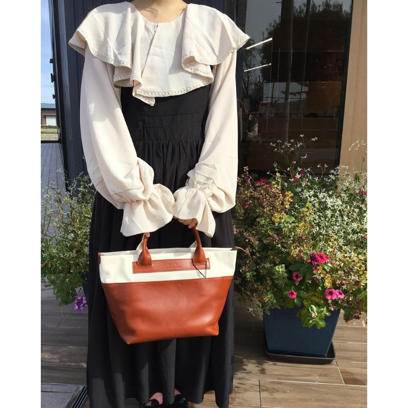 レディース 国産 キャンパスミニトート 7M8-1064(ナチュラル×ライトブラウン)