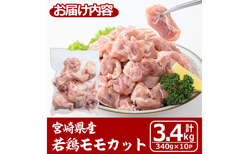 - 宮崎県産若鶏モモカット(計3.4kg・340g×10P) 肉 鶏肉 鳥肉 とり肉 冷凍 小分け モモ肉 カット済 からあげ 宮崎県 門川町 【株式会社マルミヤストア】【MA-09】