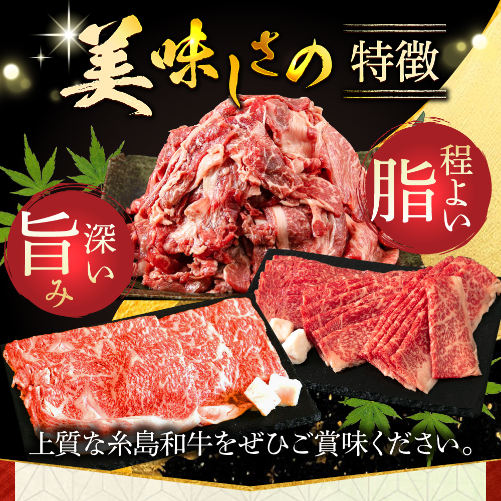 - 【月限定10個】希少 和牛 糸島 和牛 こまぎれ 1kg 糸島市 / トラヤミートセンター [AJD003] すき焼き 切り落とし しゃぶしゃぶ 焼肉 赤身 黒毛和牛 国産 牛肉 こま切れ