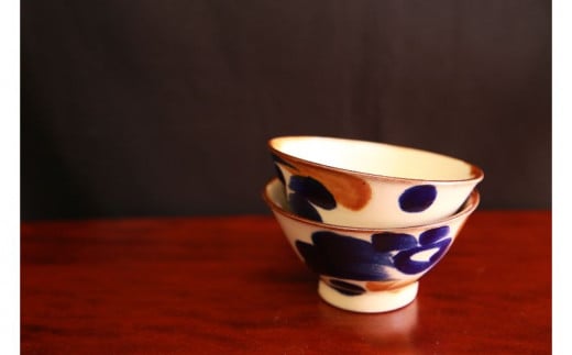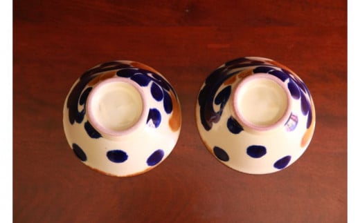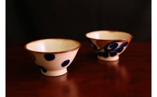 - 【やちむんカフェ器人】4寸マカイ<2個セット> 〇 伝統工芸品 沖縄 読谷村 ペア 仲間陶房 一枚焼き 陶器 人気商品 お茶碗 唐草 点打ち