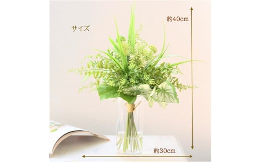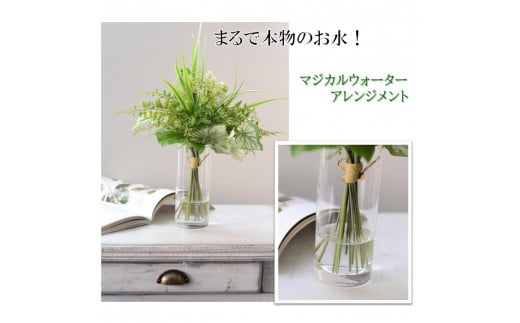 お手入れ不要・まるで本物の水「マジカルウォーターアレンジ・フレッシュグリーンブーケ」 光触媒加工スプレー済み