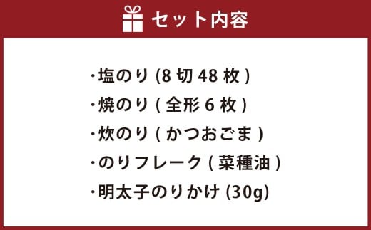 A316 江の浦海苔本舗 お勧めセット 5種 塩のり 焼のり 炊のり(かつおごま) のりフレーク(菜種油) 明太子のりかけ 海苔 のり ノリ 焼海苔 味付海苔