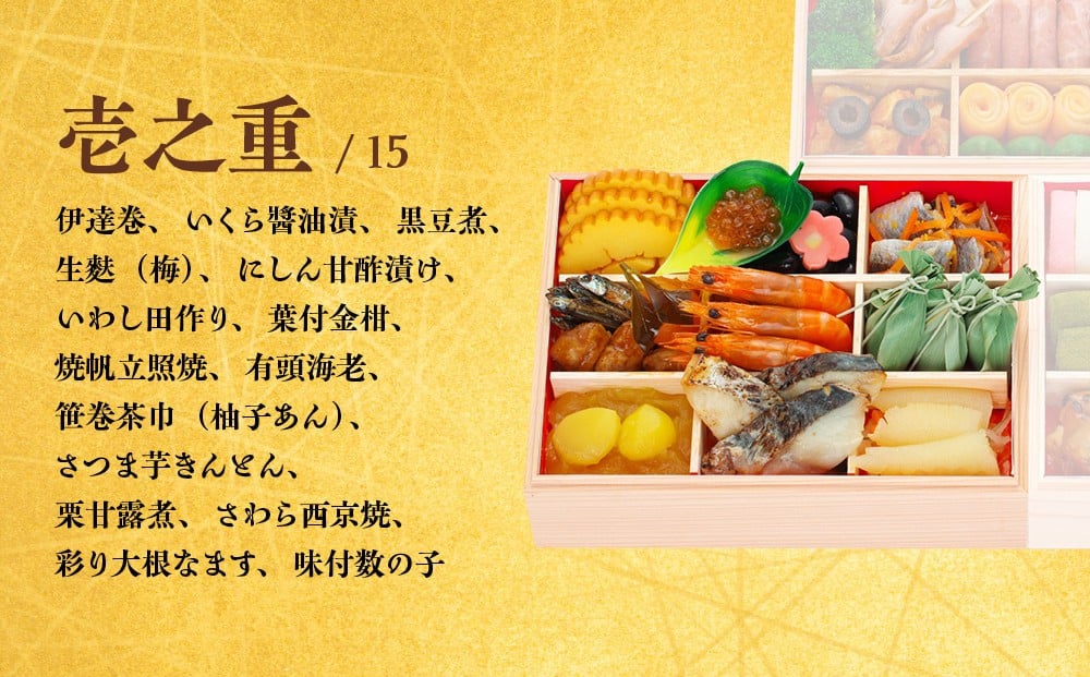 京都 和洋折衷 おせち 三段重(61品目、3~4人前)冷凍【先行予約/毎年・早期受付終了品】12月29日か30日配送(日時指定不可)〈ころ柿羊羹・玉露ちりめん入り、おせち、おせち料理、冷凍おせち〉
