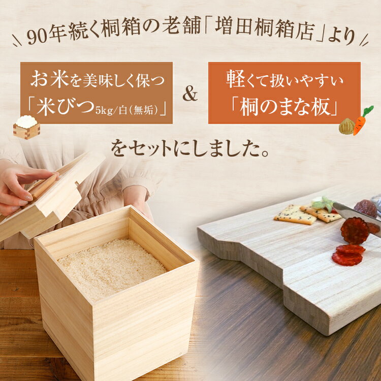 - 【ふるさと納税】米びつ(桐製)<5kgタイプ>+桐のまな板 木製 桐 収納 木箱 桐箱 桐製 収納 ストック ストッカー キッチン収納 インテリア 雑貨 キッチン雑貨 キッチン用品 5kg 米櫃 こめびつ お米 保存容器 俎板 まな板 新生活 増田桐箱店