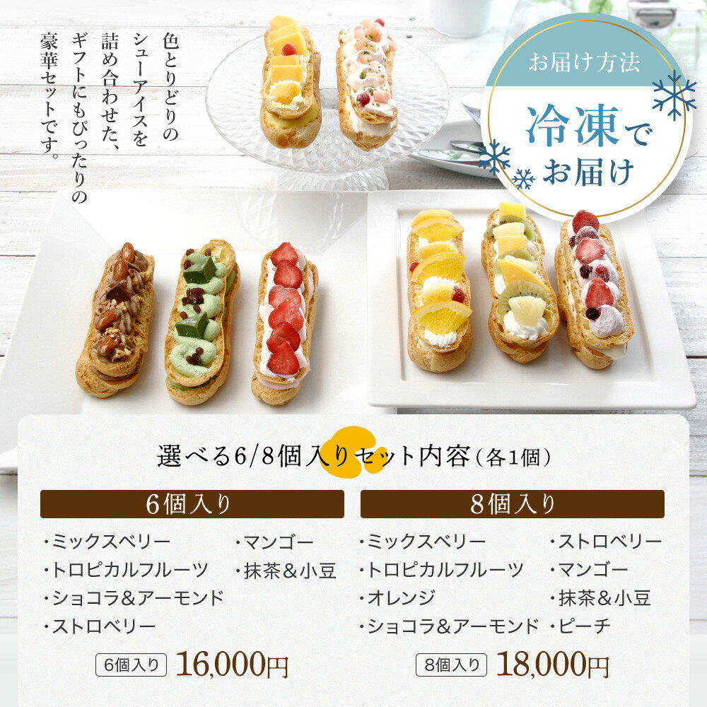 【ふるさと納税】【クレーム デ ラ クレーム】選べる6 / 8個入り プレミアムバトンシューアイスケーキ | ご褒美スイーツ シュークリーム専門店 シュー おしゃれ 可愛い 大人気 おすすめ シュークリーム ケーキ お菓子 スイーツ ギフト プレゼント 贈答 お取り寄せ 送料無料