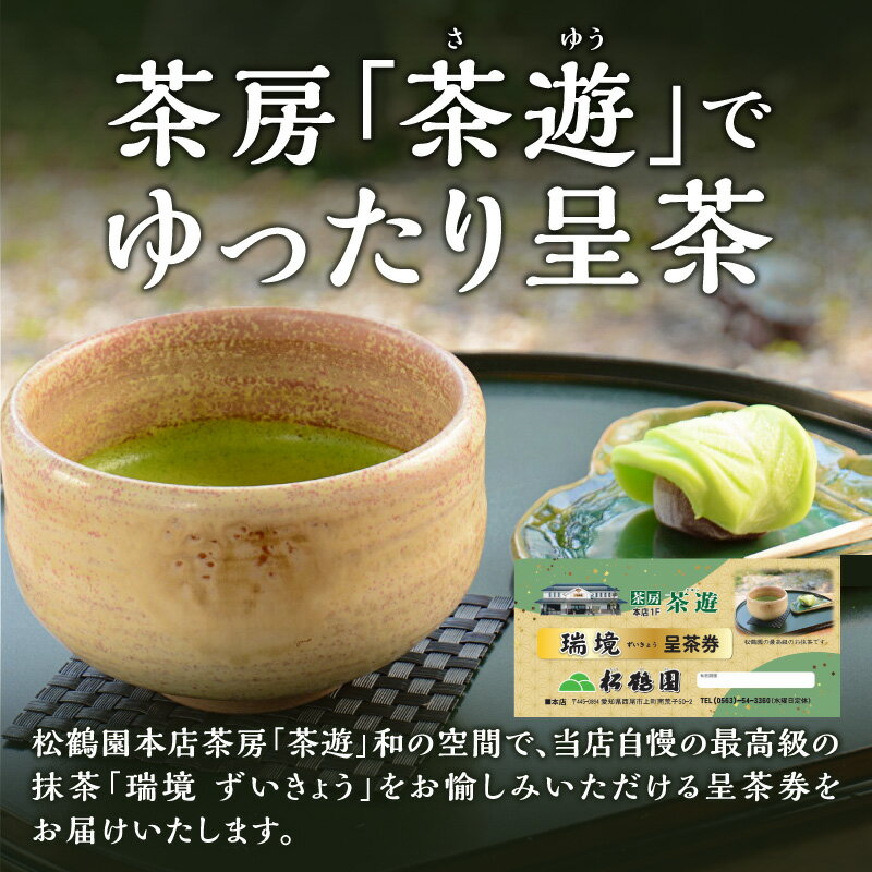 【ふるさと納税】抹茶「瑞境」呈茶券S088-9 お食事券 食事券 食事 チケット 体験 体験チケット お抹茶 抹茶 デザート スイーツ 和菓子 菓子 お菓子 グルメ ご当地 ご当地グルメ 観光 旅行 旅 家族旅行 一人旅 観光地 サイトシーイング 西尾の抹茶 松鶴園 茶遊 愛知県 西尾市