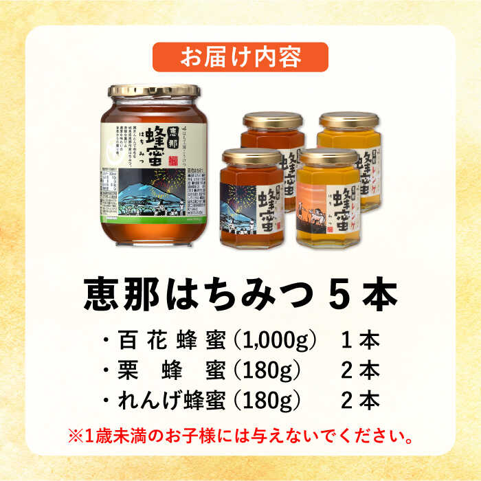 【ふるさと納税】恵那蜂蜜 5本セット (蓮華蜂蜜180g×2本、百花蜂蜜1000g×1本、栗蜂蜜180g×2本) 国産 はちみつ 蜂蜜 ハチミツ 岐阜県産 恵那市産 健康 美容 産地直送 お取り寄せ恵那市 / はち工房こうけつ[AUDF039]