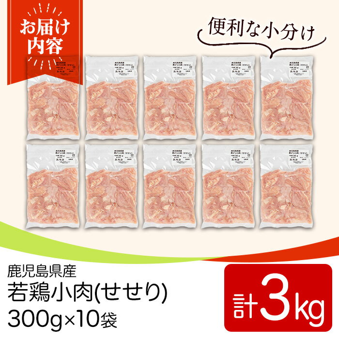 【ふるさと納税】鹿児島県産若鶏小肉(せせり)(300g×10袋・合計3kg) 国産 鶏肉 鳥肉 肉 若鶏 お肉 小肉 せせり 希少 小分け 冷凍 真空パック【TRINITY】