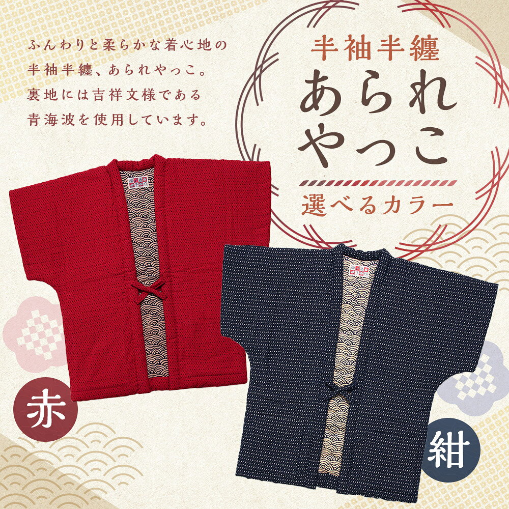 - 【ふるさと納税】あられ奴 ( やっこ ) <選べるカラー> 紺 赤 半袖 半そで 半纏 はんてん 織物 柄 冬 防寒 あったか 綿入り 中わた ルームウェア 部屋着 ギフト プレゼント 日本製 送料無料 【2025年8月下旬より順次発送】