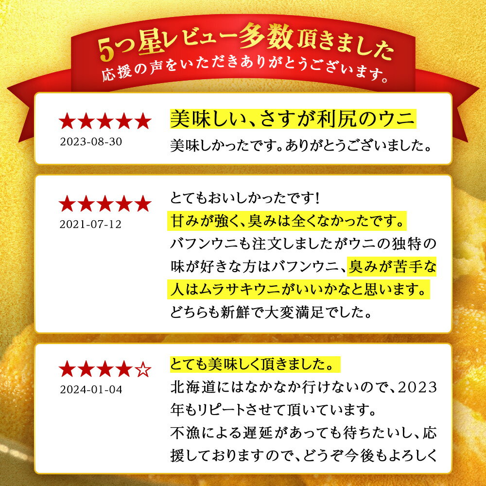 【年内配送可】エゾバフンウニ(黄系)約100~110g×3折 D-14030