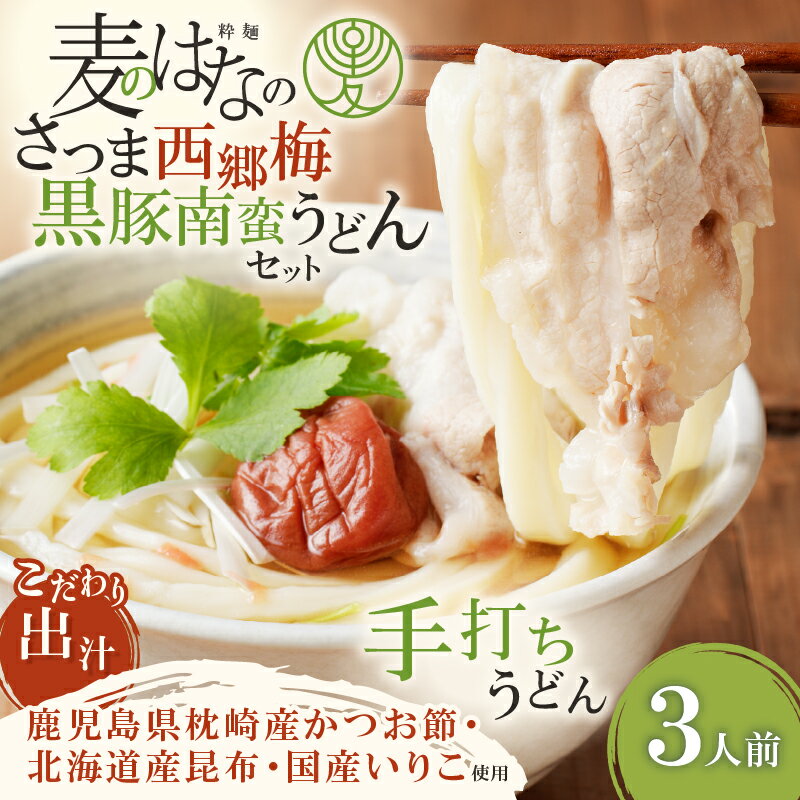 【ふるさと納税】 麦のはな の さつま西郷梅黒豚南蛮うどん セット 3人前 手打ち うどん 黒豚南蛮うどん 黒豚 南蛮うどん 鹿児島県産 鹿児島市 出汁 こだわり 豚 肉 スープ 梅 謹製 粋麺麦のはな ふるさと納税 鹿児島 おすすめ ランキング プレゼント ギフト