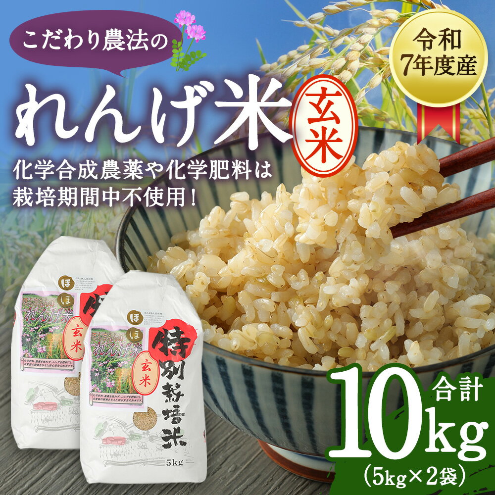 - 【ふるさと納税】【先行予約】化学合成農薬や化学肥料は栽培期間中不使用! こだわり農法の「れんげ米」 5kg × 2袋 合計10kg 玄米 お米 れんげ米 れんげ農法 ほんまもん農産物 お取り寄せ 大分県 臼杵市産 国産 送料無料