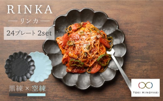 【美濃焼】リンカ 24 プレート 2枚セット 黒 練×空 練【カネコ小兵製陶所】【TOKI MINOYAKI返礼品】 食器 皿 プレート [MBD051]