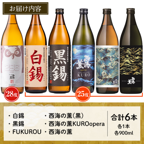 No.974 <本格芋焼酎>南国酒造・“お湯割専用”「FUKUROU(ふくろう)」入り芋焼酎飲み比べ6本セット 小(各900ml・合計6本) 鹿児島 酒 芋 焼酎 地酒 アルコール 飲み比べ セット