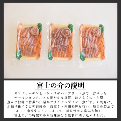 【auPAYふるさと納税限定】富士の介の刺し身 150g×3P 【富士の介 脂 うまみ オリジナル ブランド魚 養殖 川魚 流水 刺身 カルパッチョ ユッケ サーモン 鮭 サケ さけ ニジマス にじます マス 鱒 虹鱒】
