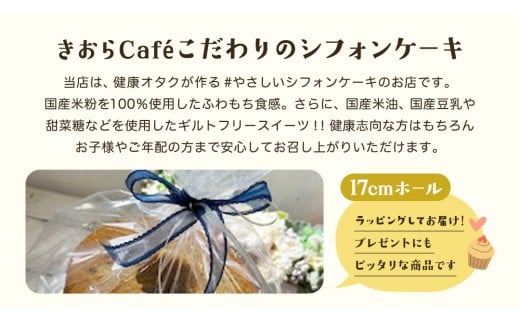- しっとり 焼き芋 シフォンケーキ 17cmホール スイーツ ケーキ デザート 米 米粉シフォンケーキ グルテンフリー フリースイーツ きおらカフェ 米粉スイーツ 甜菜糖 やさしいシフォンケーキ おやつ 誕生日